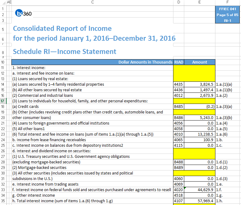 Office of Thrift Supervision. Banks and Thrifts must use the standardized forms provided by the FFIEC to submit their data and each Call Report is audited by an FDIC analyst for errors and audit flags. These reports are available to the public on the FDIC website. A sampling of the Report of Income (RI) schedules include: