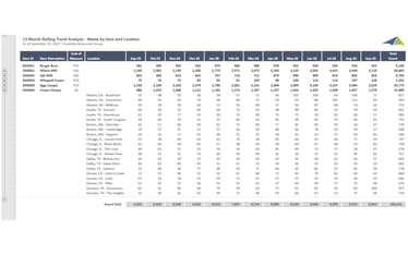 Retail - Restaurant – 13 Month Rolling Trend Analysis – Inventory – Waste by Item and Location