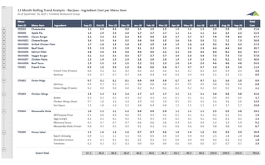 Retail - Restaurant – 13 Month Rolling Trend Analysis – Recipes – Cost per Menu Item