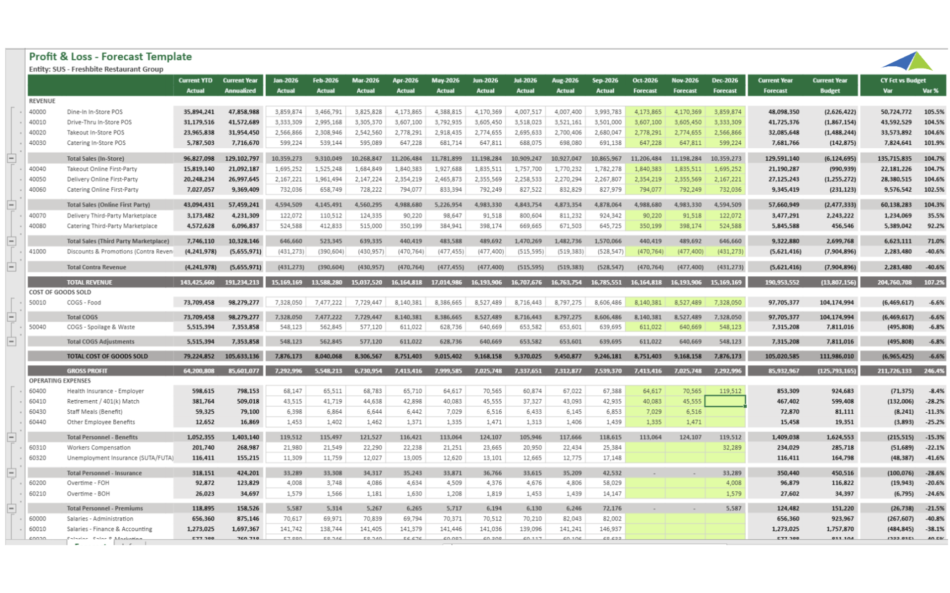 Retail - Restaurant – P&L Top-Down Driver Based Forecast