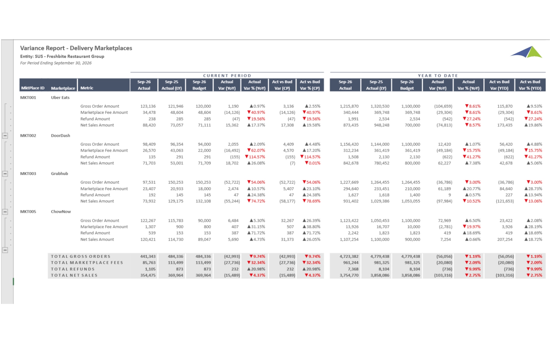 Retail - Restaurant – Variance Report – Delivery Marketplaces